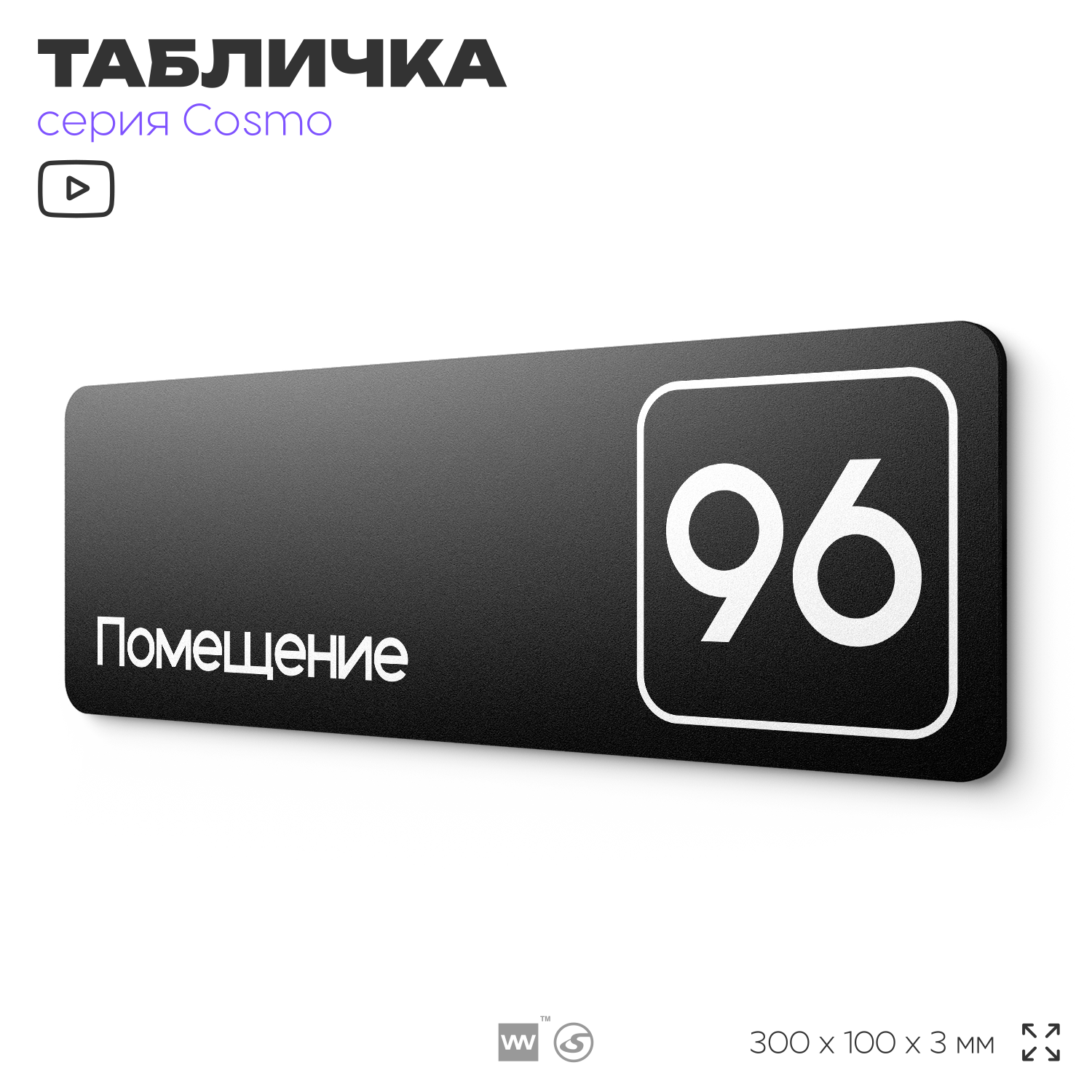 Табличка с номером помещения "Помещение №96", номер на дверь, 30 х 10 см, серия COSMO, черная, Айдентика Технолоджи